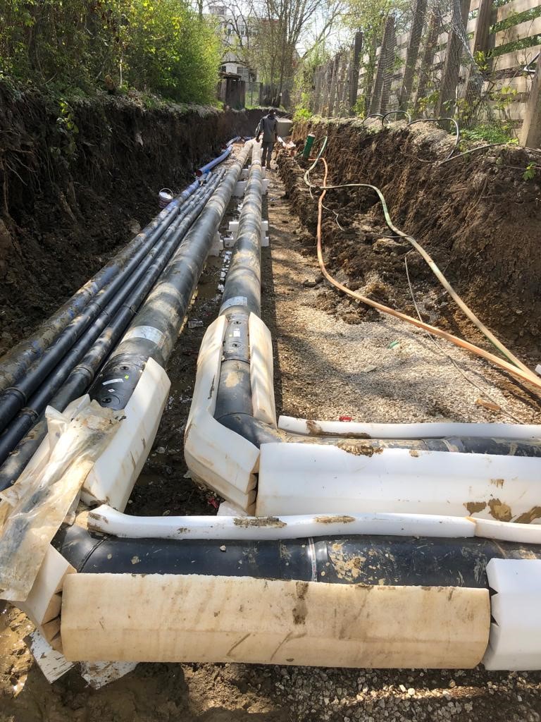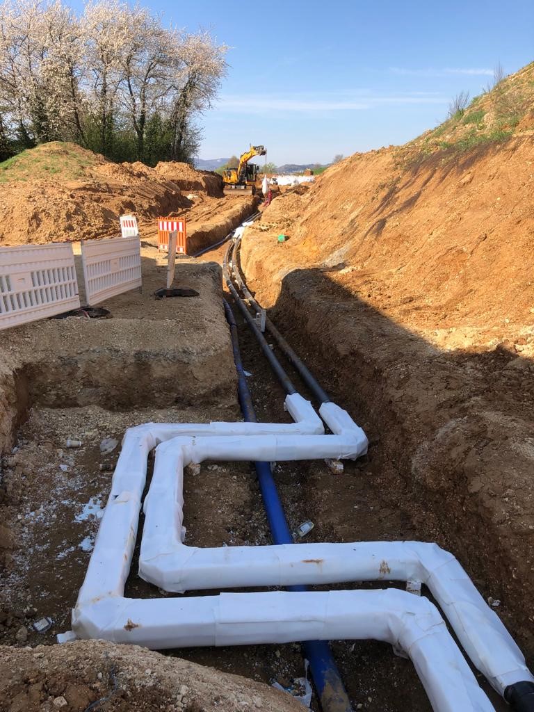 Gas-, Wasser- und Fernwärmeleitungen werden momentan im Neubaugebiet "Tannenwäldle" in Aalen verlegt. Insgesamt werden dabei über 35 Bauplätze erschlossen.