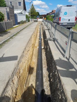 Seit Anfang Juli sind wir mit der Errichtung eines Nahwärmenetztes in Beuren beschäftigt. Im gesamten Ort werden Doppelrohre zwischen DN25/180 und DN100/400 verlegt. Die Arbeiten werden bis ins nächste Jahr andauern.