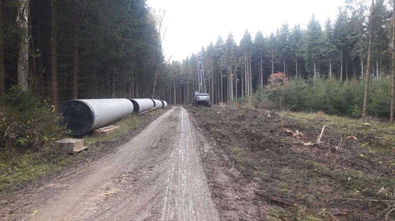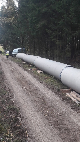 Bei Westerstetten im Alb-Donau-Kreis wurde mit der Sanierung eines ca. 1.000m langen Abschnitts der Druckleitung 3 begonnen. Momentan werden die ca. 8 Tonnen schweren Stahlrohre DN 1400 angeliefert. Parallel wird mit dem Rohrgrabenaushub begonnen.