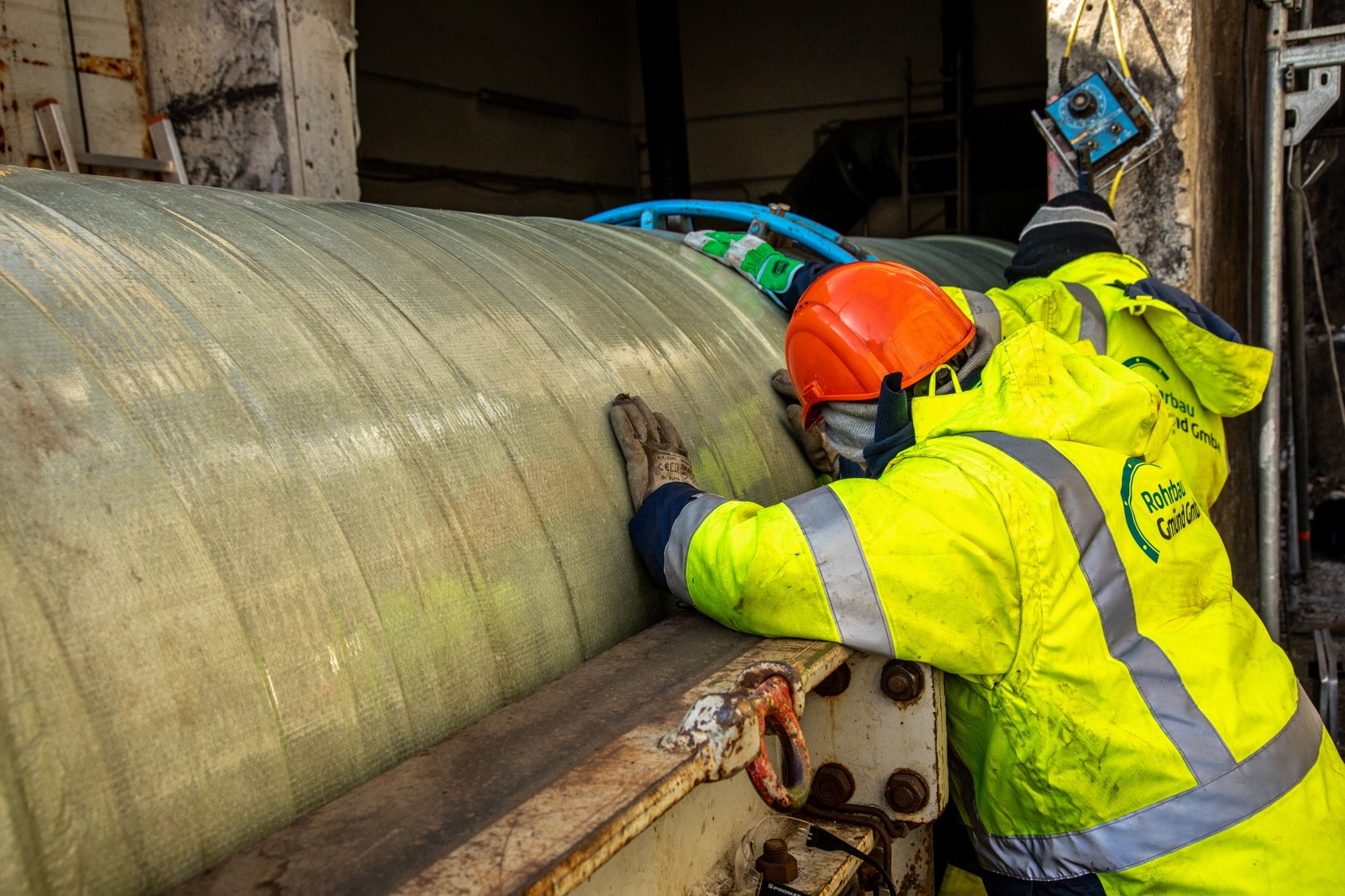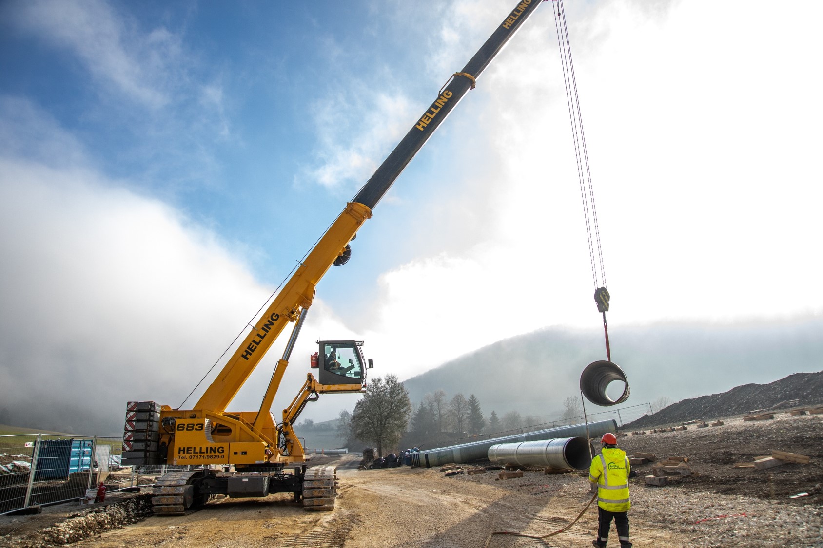 Zwischen Oberkochen und Essingen hat ein nicht alltägliches Bauprojekt begonnen. Auf einer Länge von ca. 1.900m soll eine von zwei Freispiegel-Stollenkammern mit einer DN 1200 Stahlrohrleitung verrohrt werden. Momentan laufen umfangreiche Vorbereitungsmaßnahmen bevor dann im Oktober der eigentliche Einschub der Rohrleitung beginnt, welcher komplett von der Rohrbau Gmünd GmbH durchgeführt wird. Anbei einige Impressionen vom aktuellen Stand.