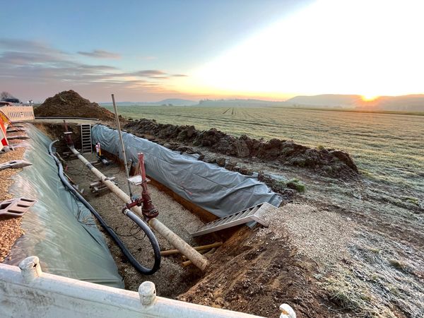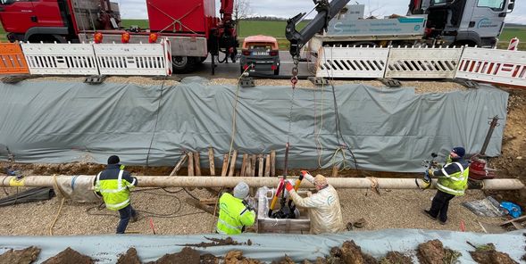 In Röttingen bei Bopfingen stand für unser Team eine vorbereitende Maßnahme für den Ausbau der B29 an. Innerhalb einer Woche wurde eine PNG-Leitung (DN200) im Stoppelverfahren installiert. Diese Leitung ist nötig, damit die weiteren Baumaßnahmen der Bundesstraße anlaufen können.